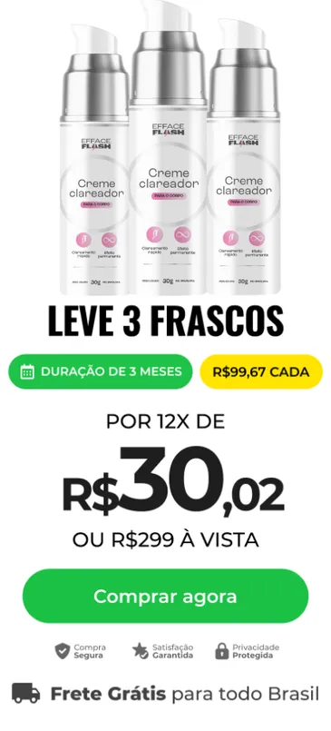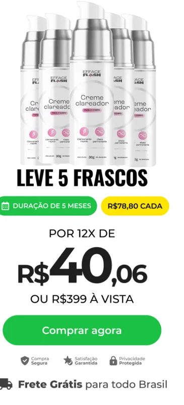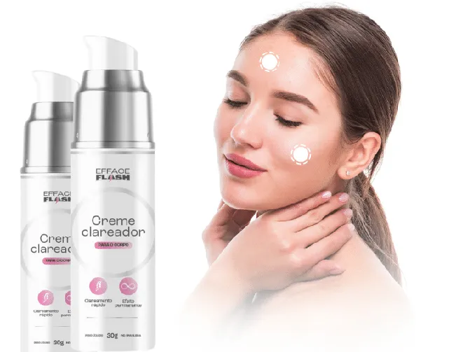 Além de clarear manchas, o clareador Efface Flash também melhora a textura da sua pele levando uma aparência mais suave para a pele.